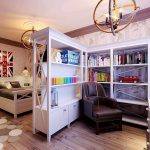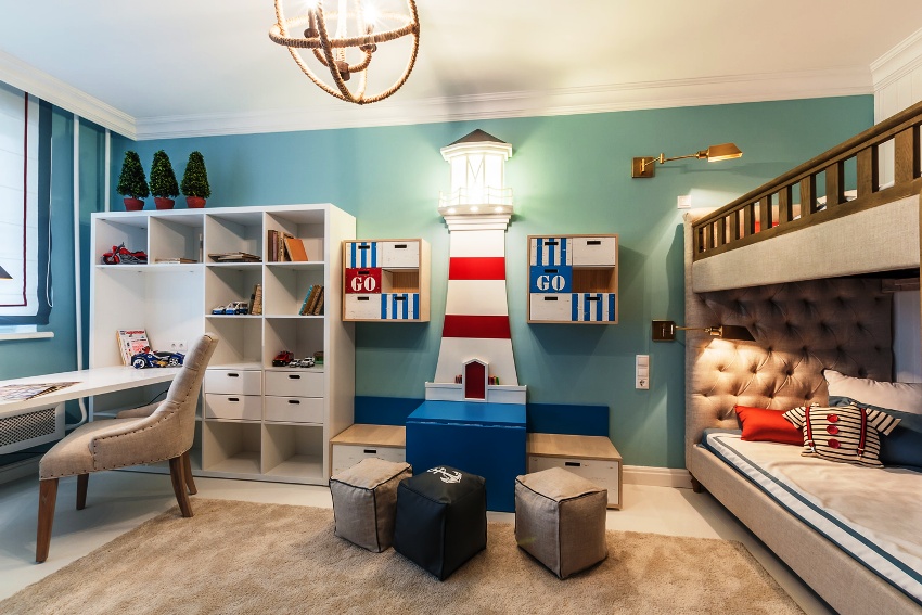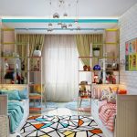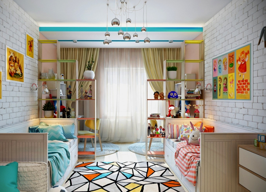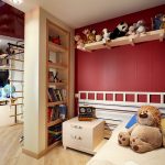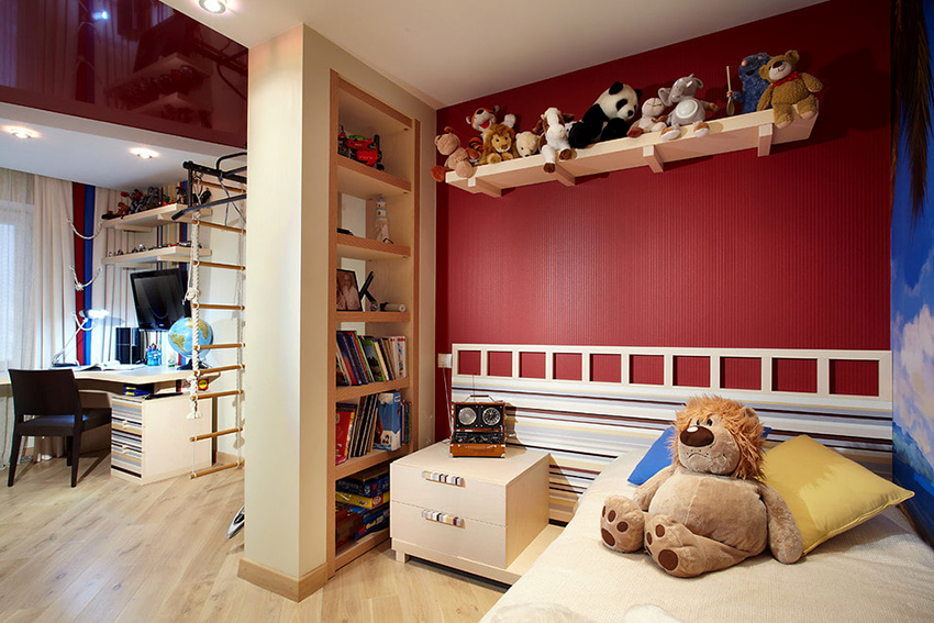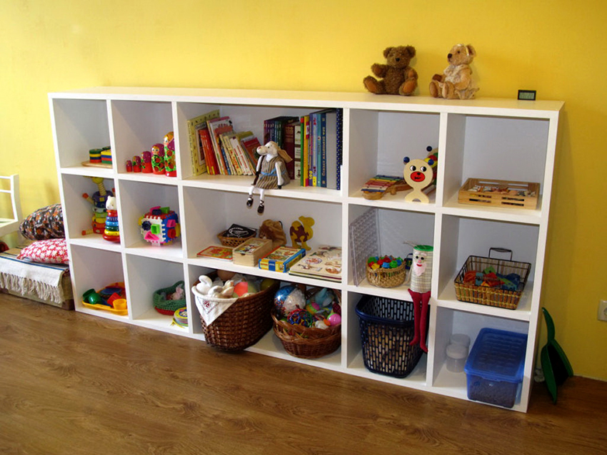 Each child has a corner, which, perhaps, is not entirely correct to call a worker: he sculpts, draws, glues there, etc. In this case, the rack dividing the room into zones will not be superfluous. It should be a low, stable structure that does not clutter up the room.
