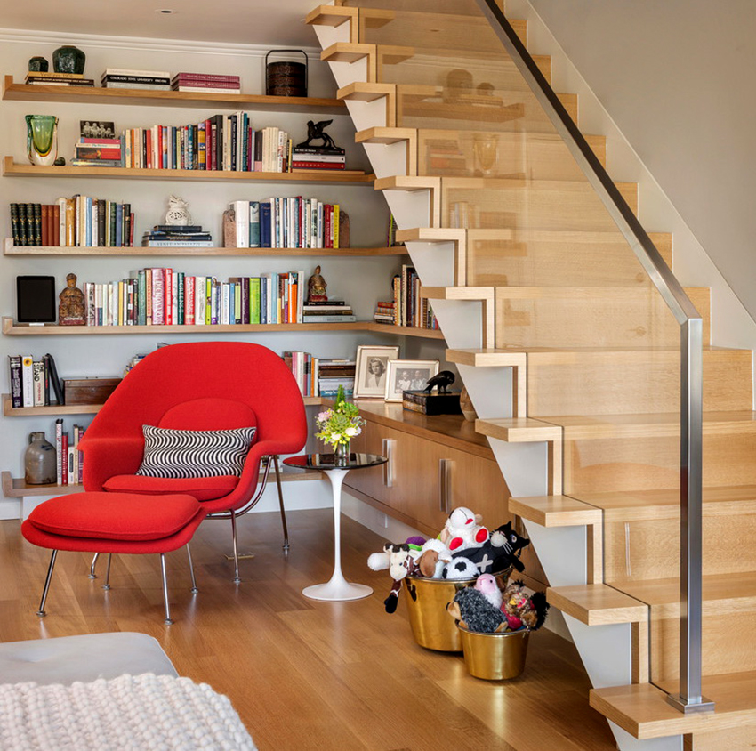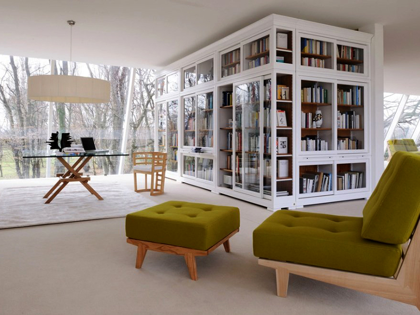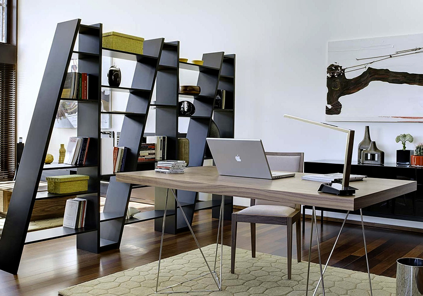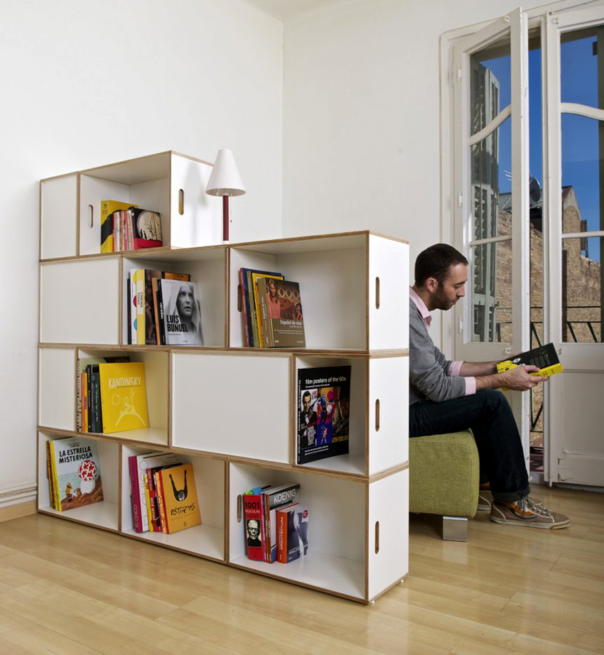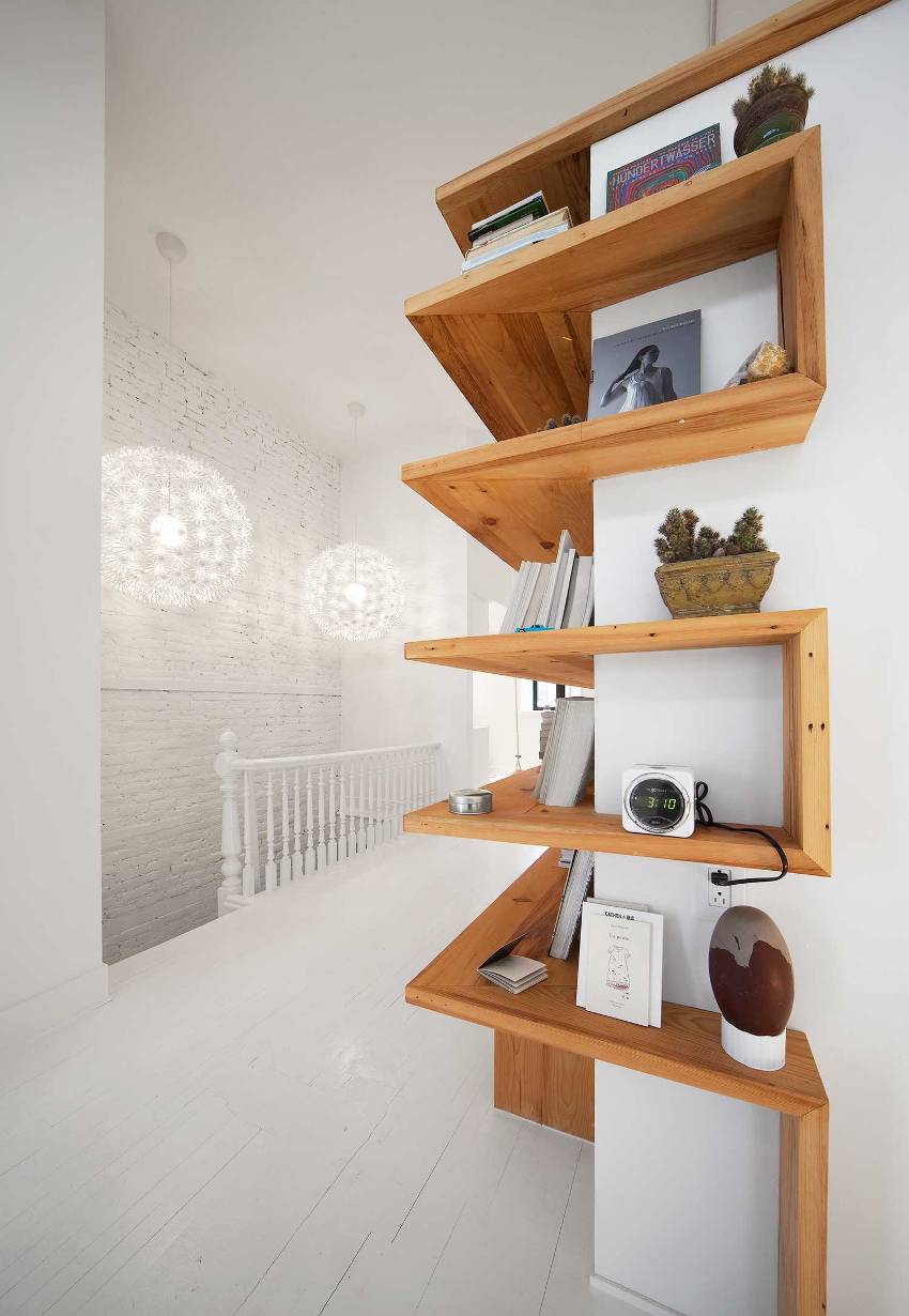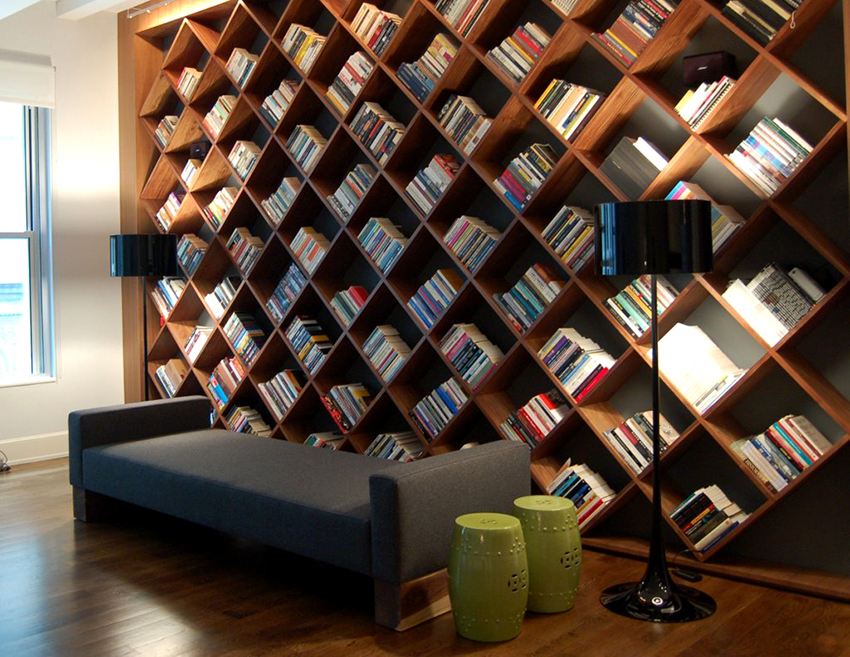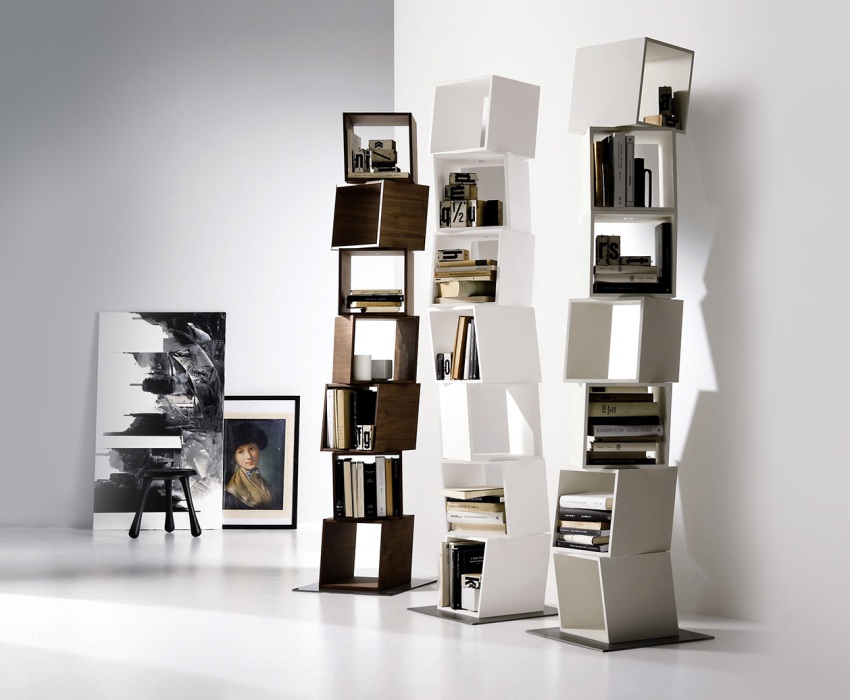 To store a small amount of books, designers offer more creative shelving models: