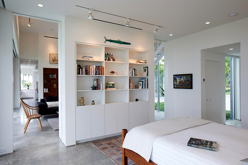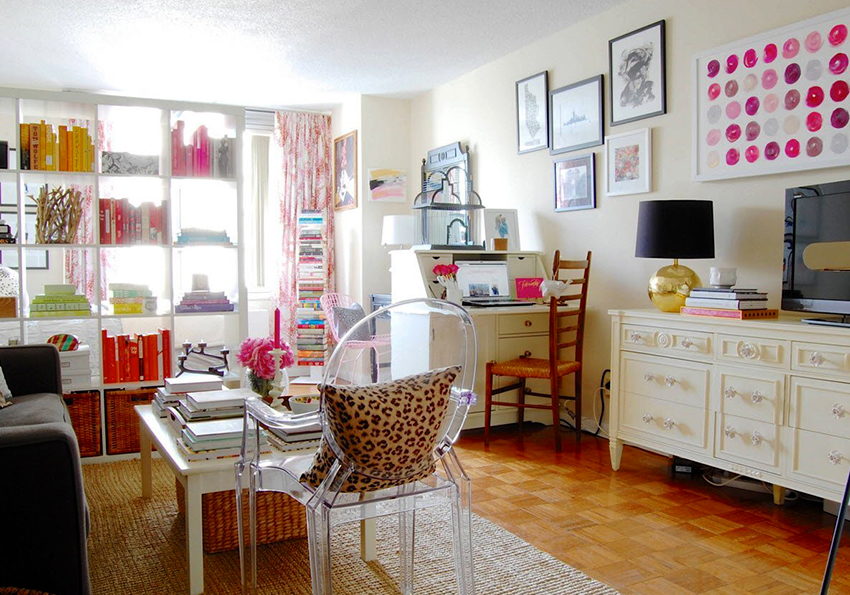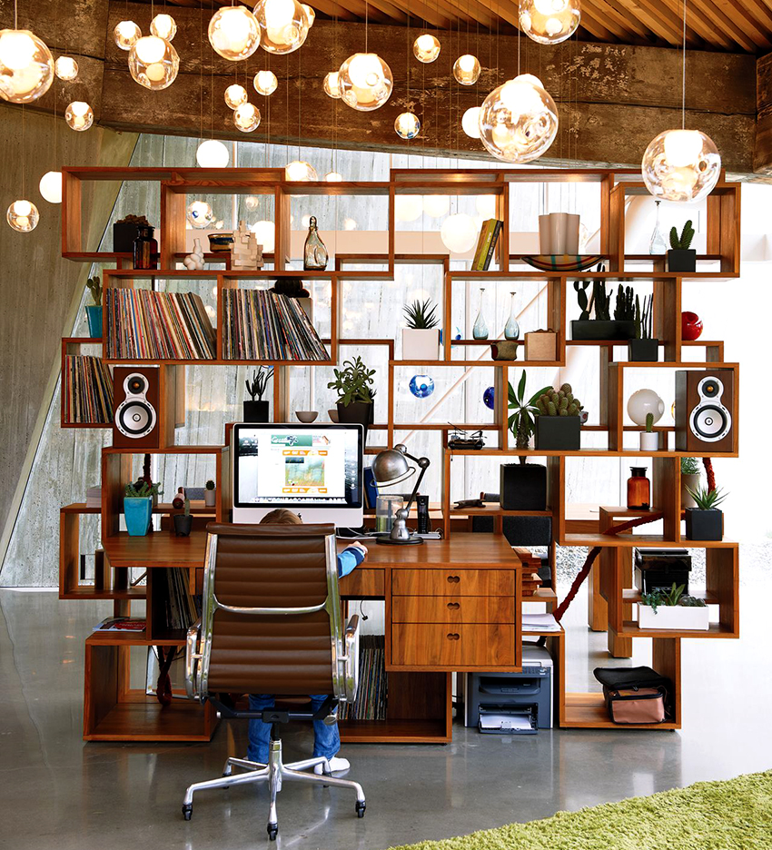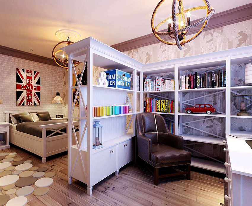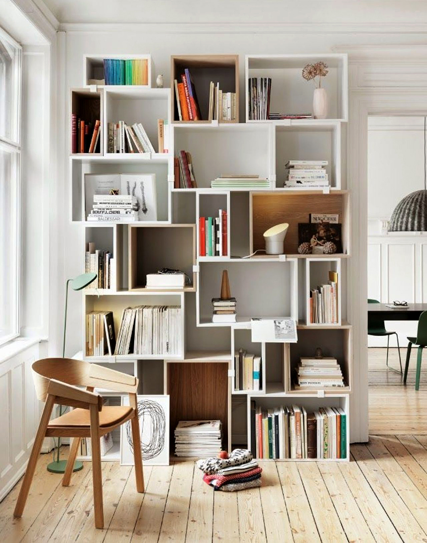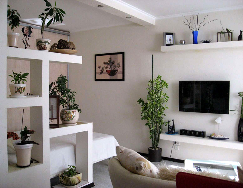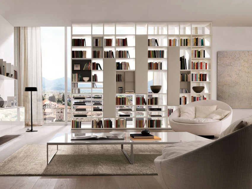 Dividing and zoning a room with a rack have almost the same goals, but still a certain difference can be distinguished: zoning is less cardinal, more visual and symbolic. Consequently, the requirements for shelving structures are significantly reduced: almost any model (if it matches the style of the room's decoration) can be used to achieve the result.