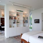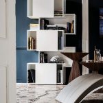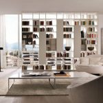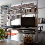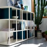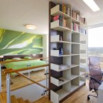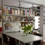 - to separate rooms with low ceilings (2.5 m), it is better to use a shelving structure with a total height of 180 cm, having a densely filled lower part (up to 80–100 cm) and an upper zone with a small number of asymmetrically located shelves and objects on them.