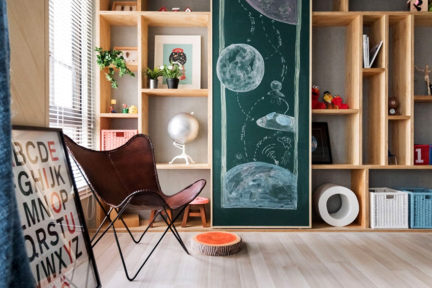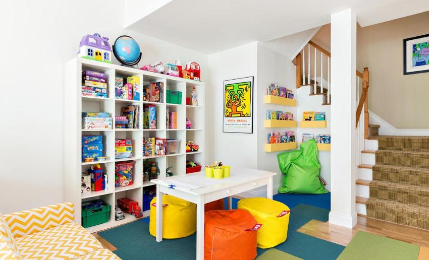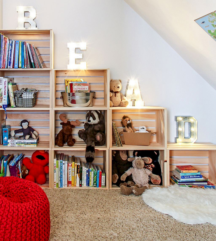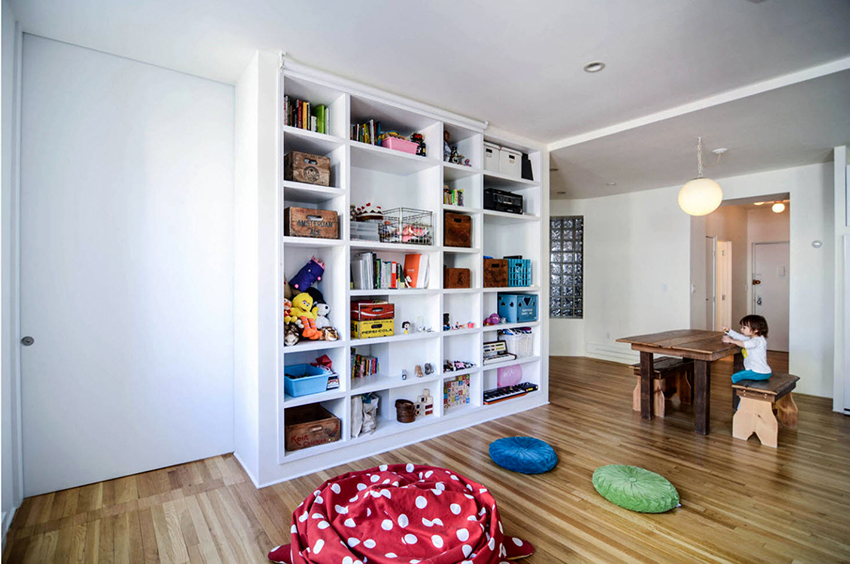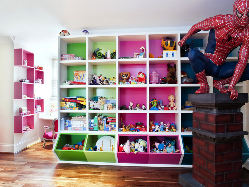 Zest of the interior: a display rack for toys in a children's room