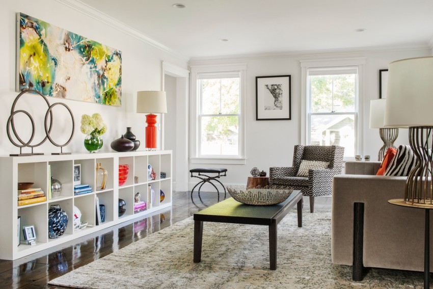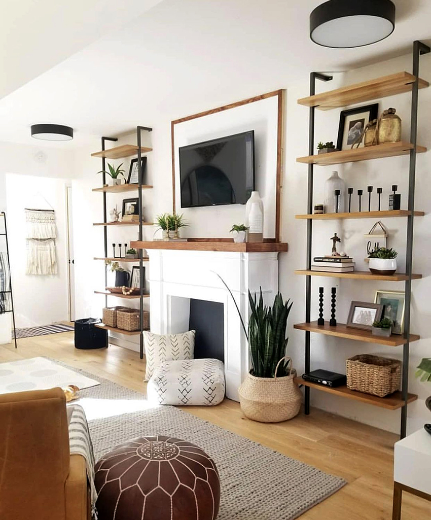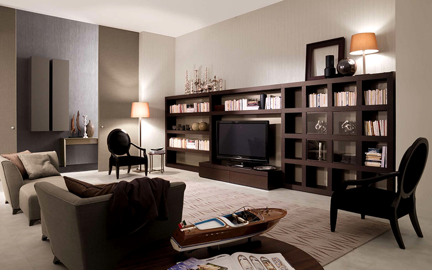 - 4 Living room shelving: a compromise of functionality and decorativeness