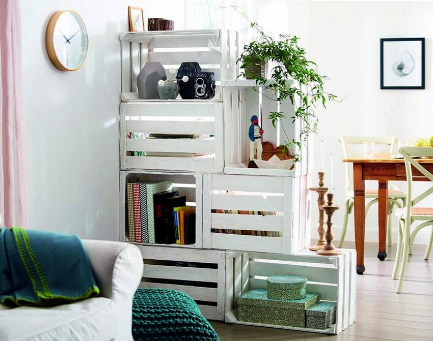 Alternatively, you can choose a rack with a large number of shelves to separate rooms. A small distance between them will give the product an original appearance.
