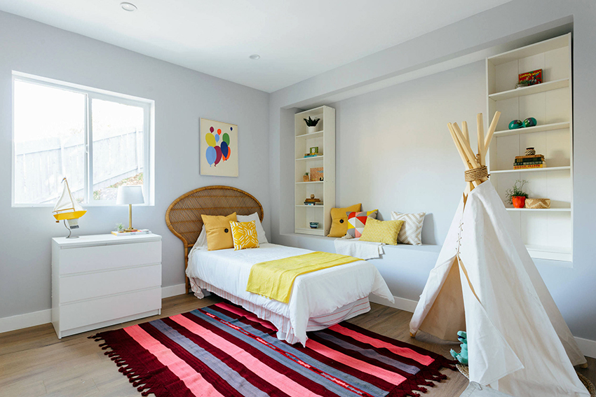 A child needs accessibility most of all. Magnets, locks, latches make their life much more difficult. Therefore, the rack is a perfectly acceptable option for a child's room. Children's furniture is most often made from wood-based panels. The choice of this material is large: it can differ in different shades, coating quality, thickness, degree of environmental friendliness. The latter indicator is gradually being improved. The tightness of the coating, including the cuts, minimizes the release of formaldehyde.