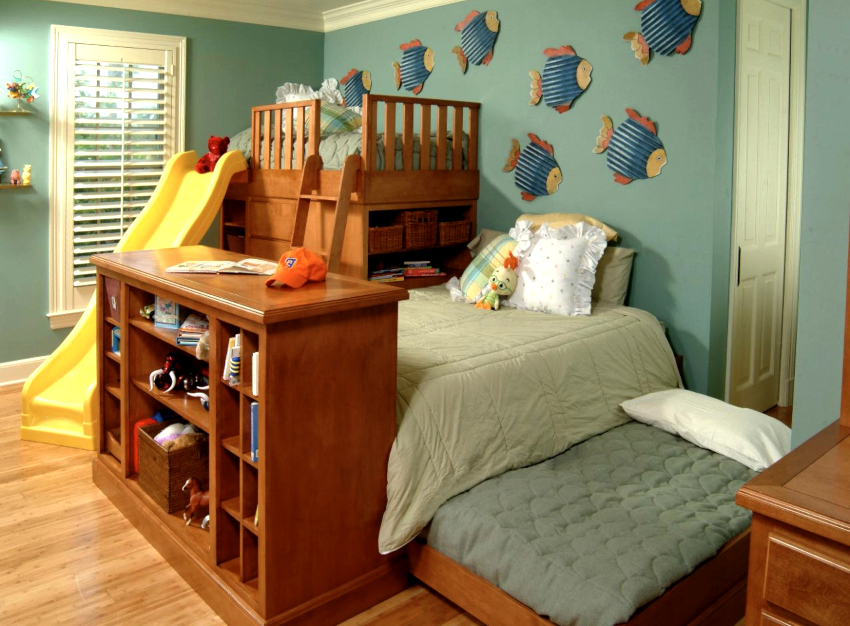 The zoning function in a children's room can be perfectly performed by a rack for an aquarium. The design of this type of furniture should rather correspond to the purpose of the structure than to the general style of decoration, so it is really possible to do it yourself. On the Internet, you can find many interesting ideas, among which you will probably be able to choose the appropriate option.