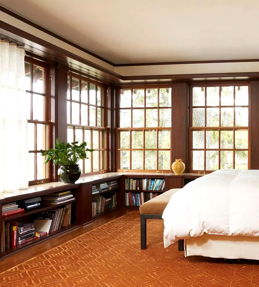 The owners are especially proud of the decorated bookcases and shelves. Such items usually occupy a special place in the room, they are not overloaded with items so as not to reduce the decorative effect. Wood lends itself well to processing. Shelves made of this material make up the majority of the offered models.