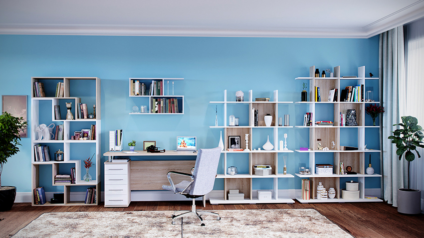 A variety of models of shelving for room zoning