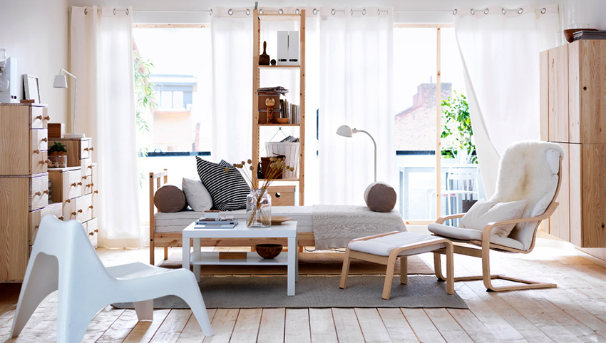 IKEA room racks are represented by a huge variety of models. If there is a need for a choice, the company's designers will offer ready-made ideas, and the company can also make furniture on an individual order. Wood and wood materials are used as materials for the manufacture, less often - metal and glass.