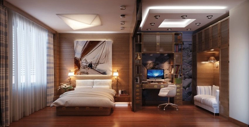 Corner walls in a room are often made to order in order to maximize the use of a blind corner and rationally use the bedroom area. Rules for choosing a corner wall in the bedroom: