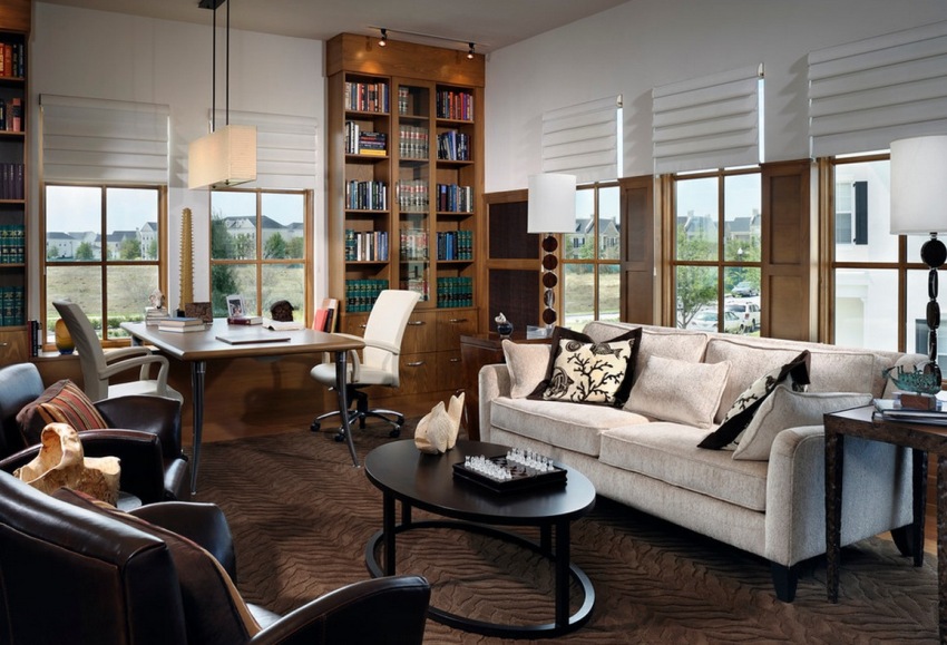 Useful advice! When equipping a workplace, you need to think about the availability of an orthopedic chair, which in style should be combined with the cabinet surfaces.