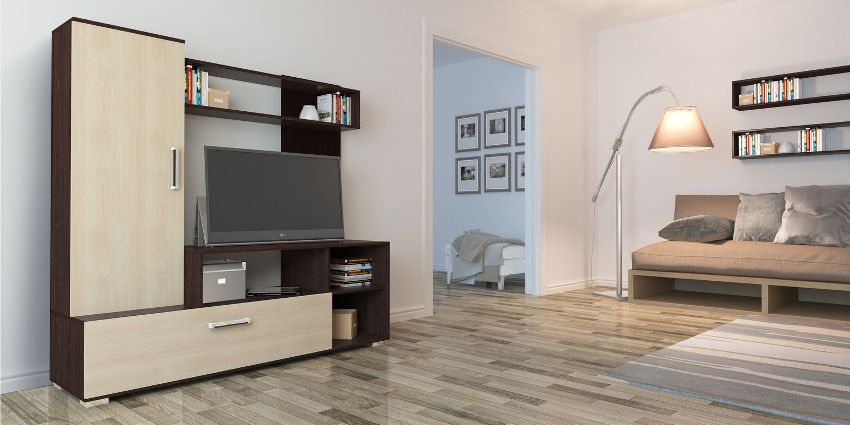 Important! If the wall is installed in the bedroom under the TV, it is necessary to ensure that the device is not located close to the wall or facade. A TV with a poorly ventilated back wall will constantly overheat and quickly fail.