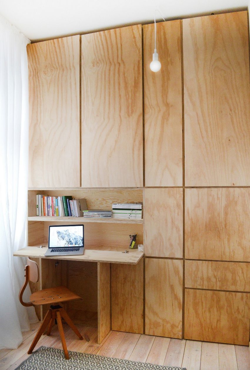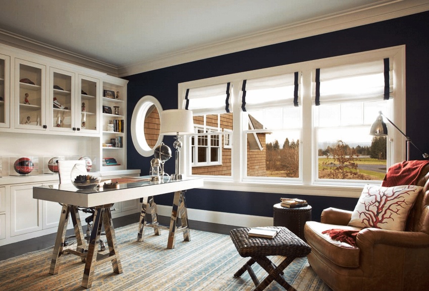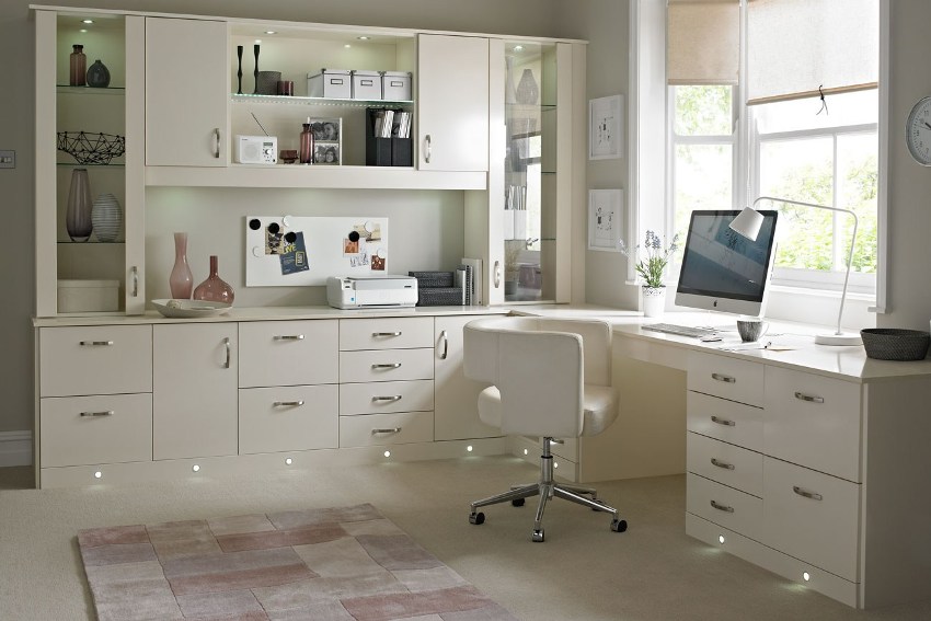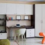 Another option for modular furniture is a wall with space for a computer desk. It is better to install the kit on the left side of the window so that the workplace is well lit during the day. As a result, it will not only be convenient to work at the computer, but you can also use this place for reading or writing.