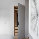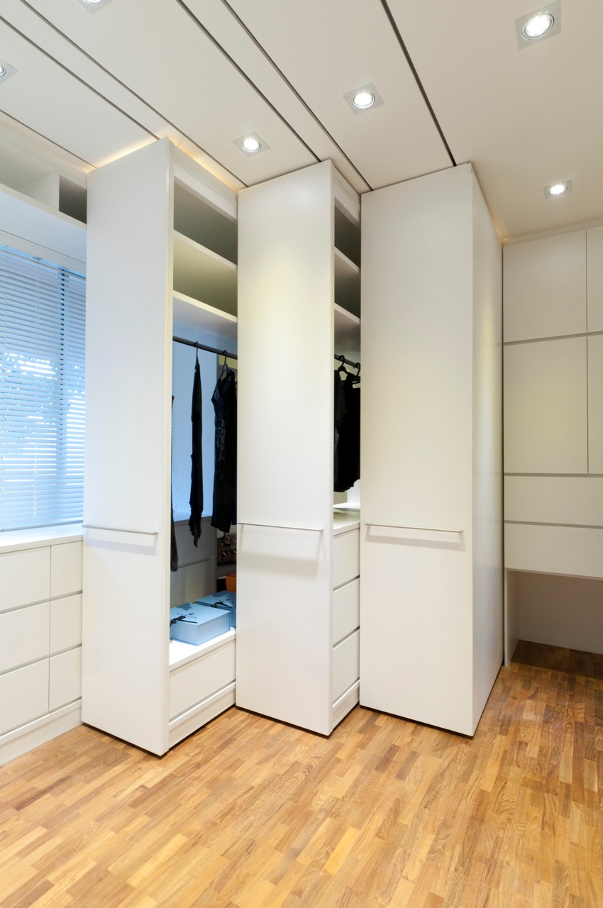 It is interesting! Basically, the walls consist of several sections, each with a specific function. Depending on the purpose, products are complemented with open shelves, sliding doors or mirrored surfaces.