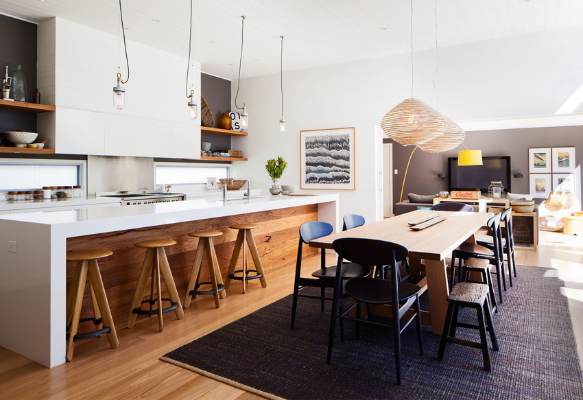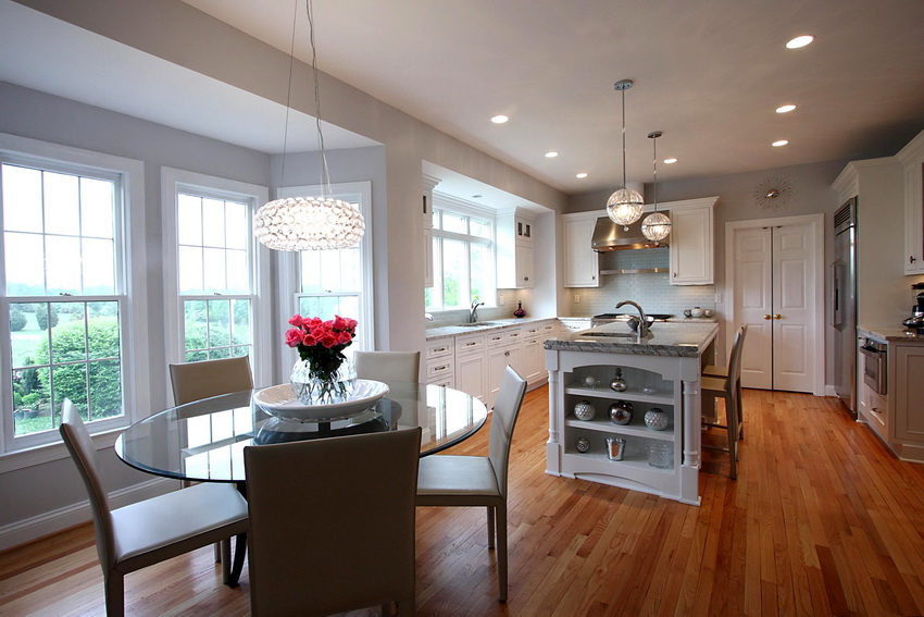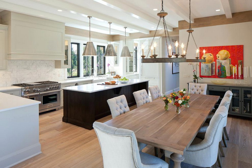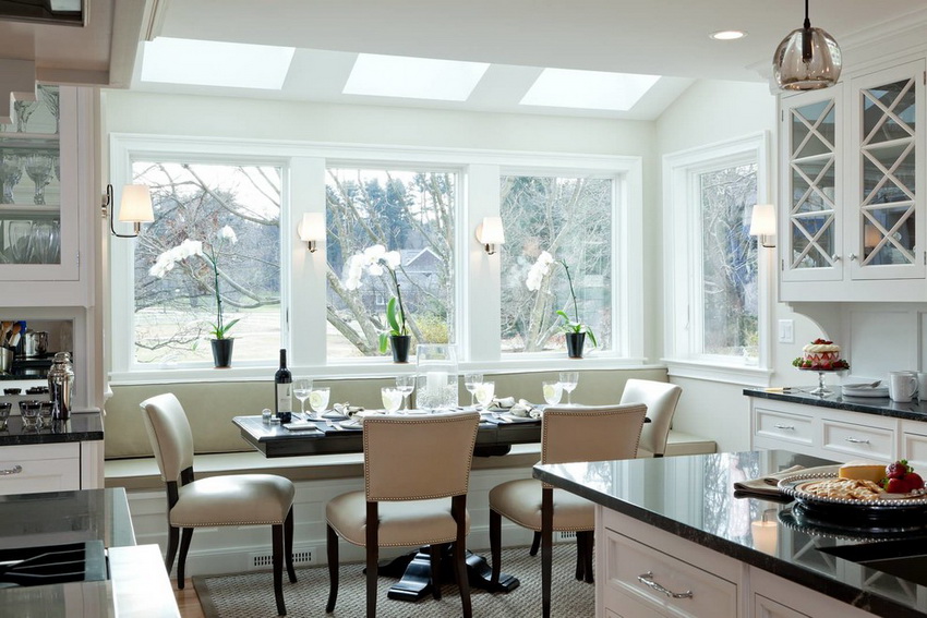 A dining area with table, chairs or sofas is an important place in the kitchen. It is here that the whole family gathers for lunch, family meetings are held, and often hosts guests. Therefore, this corner should be as comfortable and convenient as possible and at the same time correspond to the design of the entire room as much as possible. To achieve these goals, it is necessary to be guided by certain selection criteria, which include: