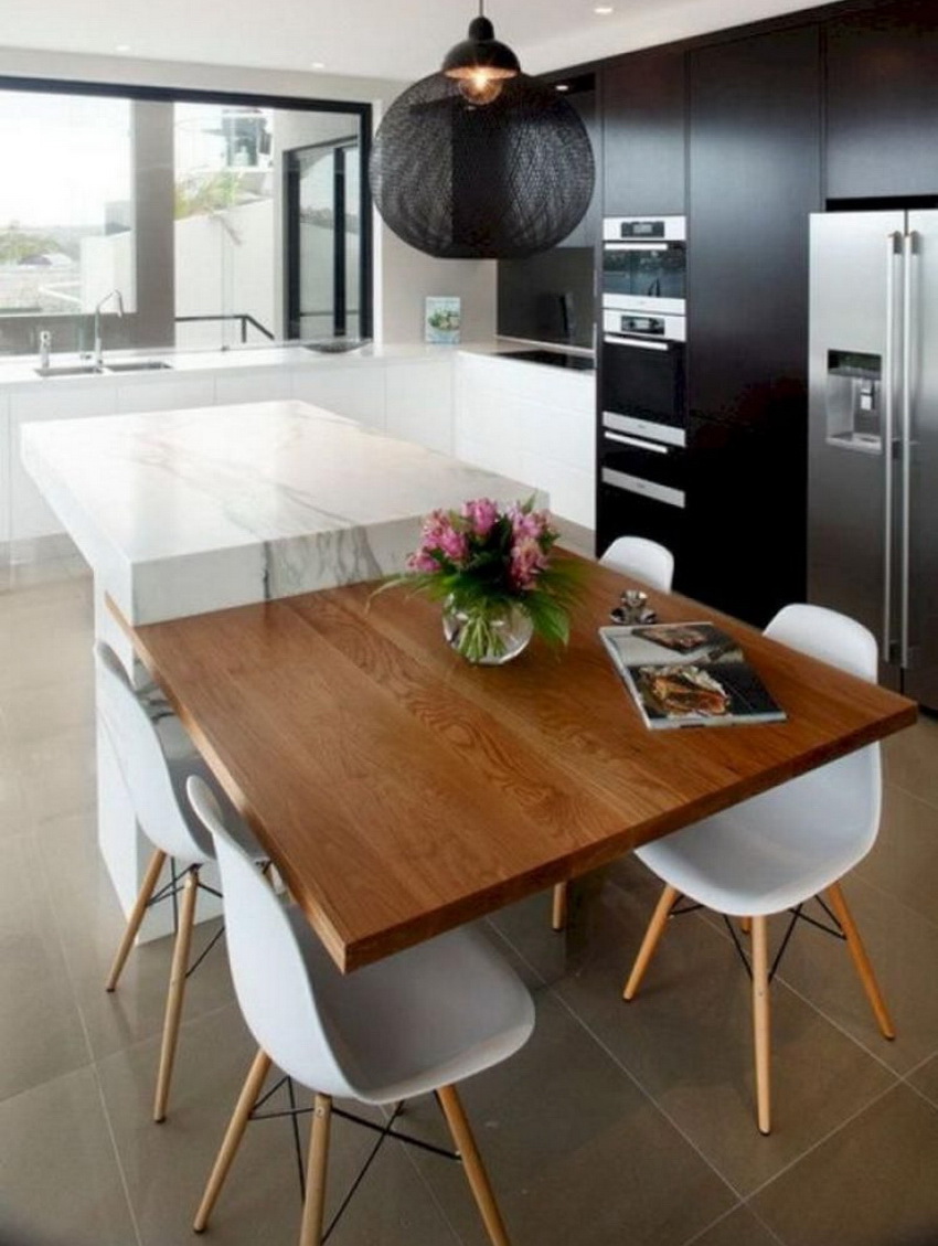 Useful advice! Sliding tables for the kitchen are very popular. Photos clearly demonstrate that such a functional feature can have both round and rectangular or square tables.The cost of such a kit, accordingly, will be significantly high.