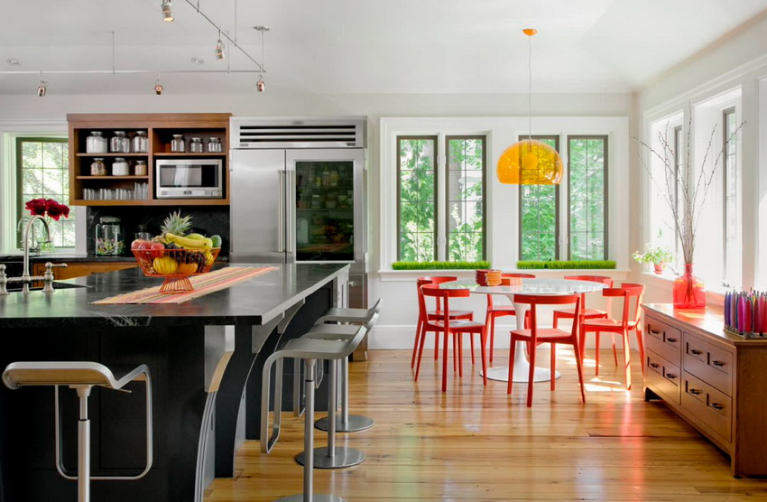 Color scheme and design of tables and chairs for the kitchen: photo options