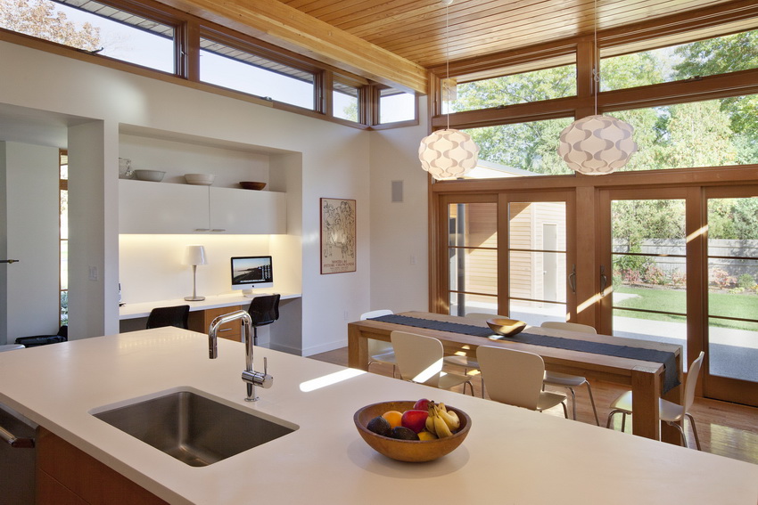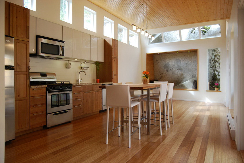 - Correct zoning of space. Every square centimeter of area is valuable in the kitchen, so the arrangement of furniture should be as ergonomic as possible. Competent distribution of the working and dining areas will create an atmosphere of comfort in the kitchen.