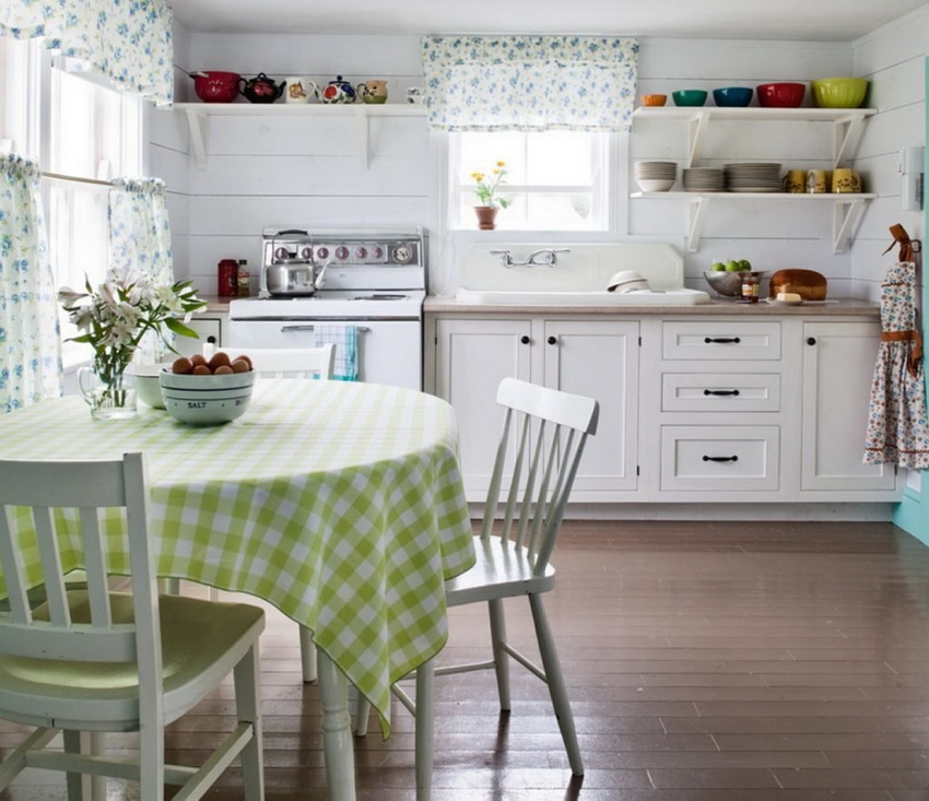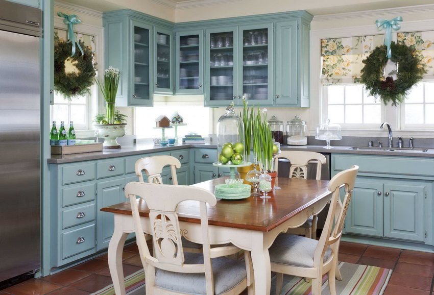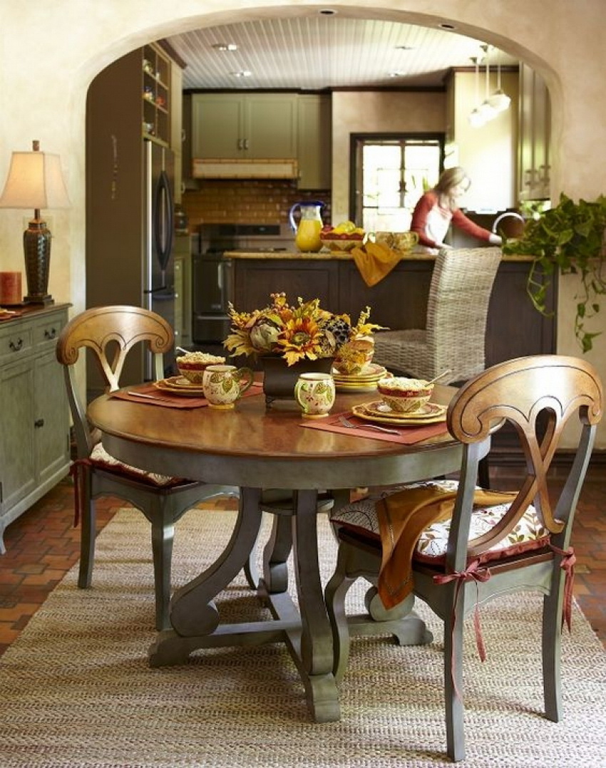 - Matching the shape, material and color of the furniture. For example, in a classic kitchen, you need to exclude bright colors as much as possible, since this is an option for modern. In Provence, the best solution would be to purchase a round table in light pastel colors.