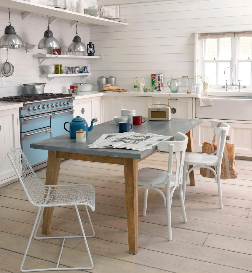 Kitchen tables can have a wide variety of shapes: they are in the form of a circle, rectangle, square, oval, semicircle, triangle, irregular polygon, and even with curly edges.