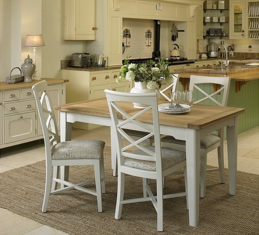 Numerous photos of rectangular dining tables testify to the popularity of this configuration. Due to the spaciousness at such a table, 6 (and even more) people can sit at once. The choice of location is also wider. Most often it is located near the window. The main disadvantage of a rectangular table is sharp corners, which are easy to hit. This problem is solved by purchasing furniture with rounded corners on the table top.
