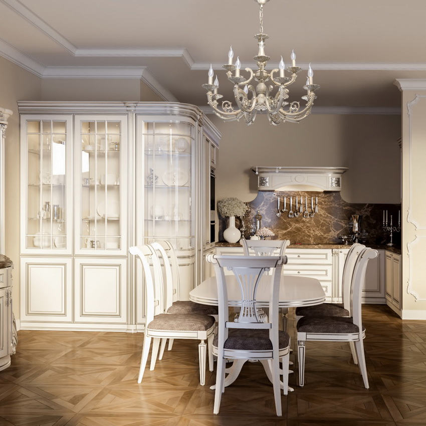 Furniture items from Italy, thanks to the use of high quality materials and age-old traditions of furniture production using hand-made decoration, are more durable and wear-resistant. The list of famous Italian factories includes SAVIO FIRMINO, INTERIORS, BAKOKKO, LLASS. At the same time, the price of tables and chairs for the kitchen is designed for different budget options, but not everyone can afford it.