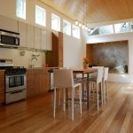 Lunch group must also fit into the room in terms of dimensions. Even before buying a headset, you need to measure the floor area where the table and chairs will be installed in the kitchen. It is necessary to take into account the availability of additional space for free movement of the seating furniture. The recommended headroom should be at least 60 cm.