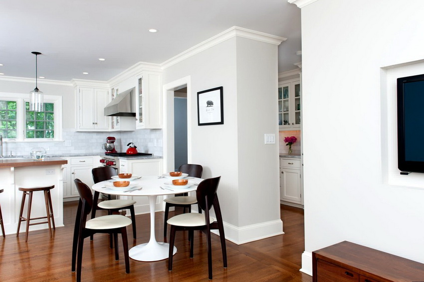 If, nevertheless, the desire to have a round table in a small kitchen is great, then it is recommended to use an alternative option in the form of a semicircular table. It can be placed against a wall or near a window.