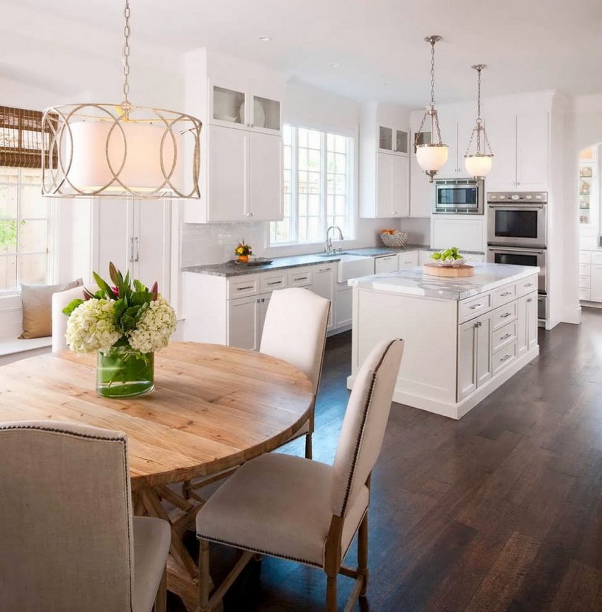 Round tables are considered to be the most aesthetically pleasing. In addition, they fit perfectly into any interior. At the same time, acquiring table in the shape of a circle, you need to be prepared for the fact that there may be a problem with its location. The location option in the center is the most ideal, but this is only possible in a spacious kitchen. Installing it in the corner will be irrational and will only accommodate 2-3 people.