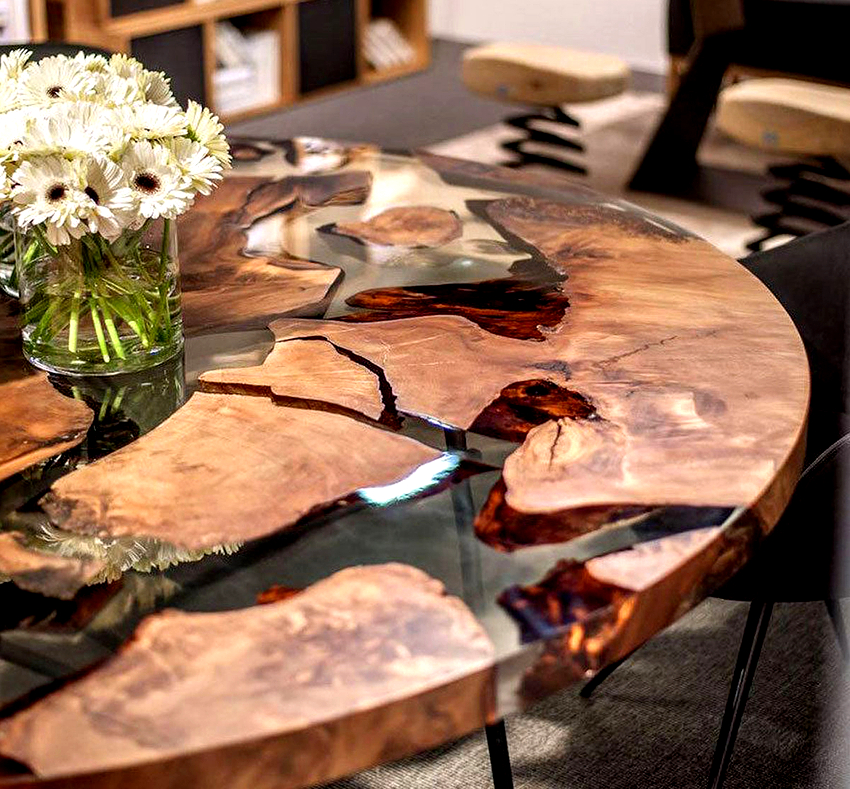 Making tables from epoxy resin for living rooms is also acceptable because it can form a glossy surface that contributes to a festive atmosphere.