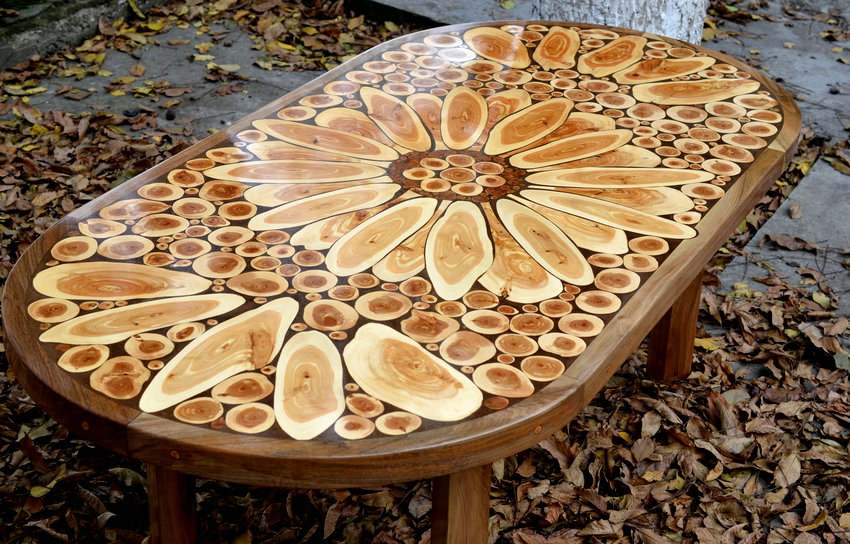 You can make other interesting table options with your own hands. It will not be possible to copy the product from the Internet in full, since it is impossible to pick up absolutely similar wooden blanks, but it is quite possible to use the idea as a whole.
