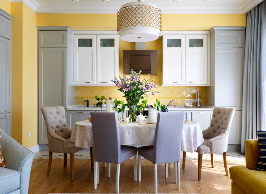 Helpful information! There is no need to match chairs of the same color. They may differ from each other on this basis. However, do not use more than 2 colors, as this will ruin the interior of the kitchen.