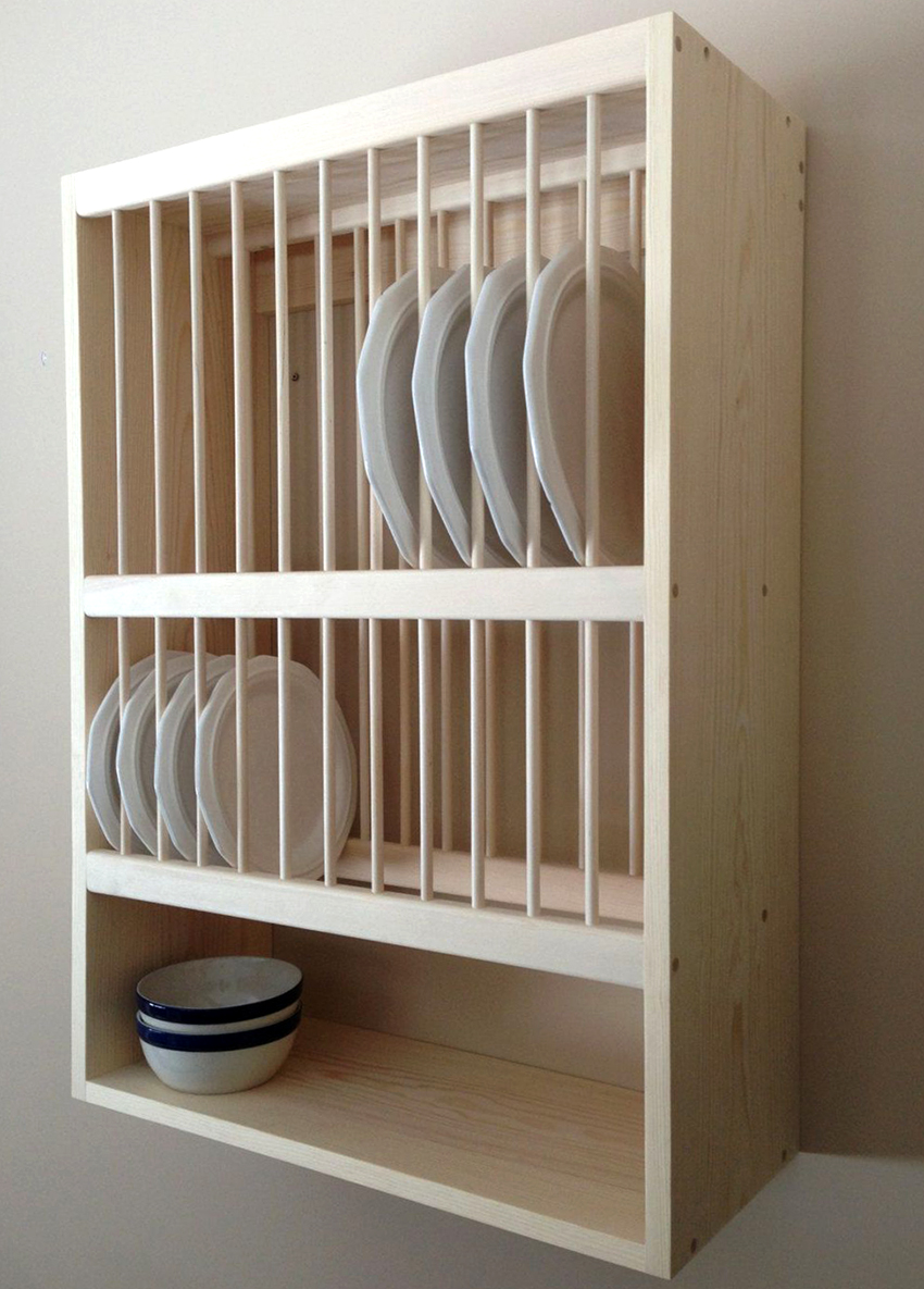 Dish dryers in the bottom cabinet rarely have two or more tiers. Most often this is a single-level construction. In turn, the dryers, which are integrated into the upper floor of the kitchen unit, are distinguished by a large variety of models. It is not at all necessary to buy a special device for this purpose.