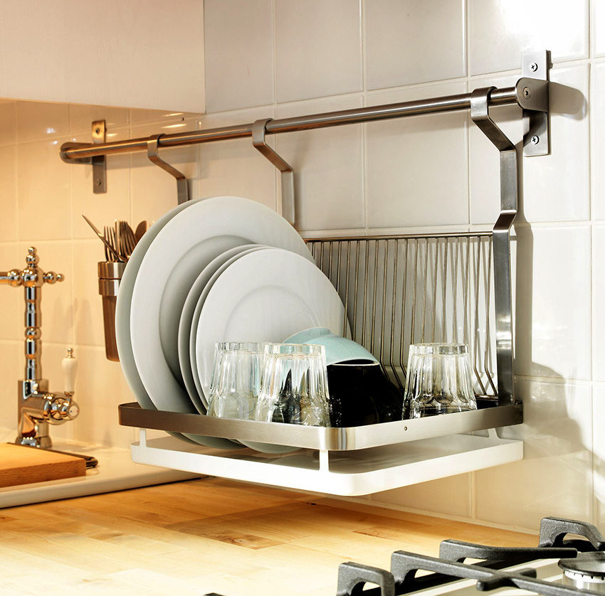 The shape and equipment of retractable kitchen dryers may be different. Among other things, some models have a large functional load. This parameter should also be considered when choosing a similar design. Multifunctional dryers are designed to place on them not only plates and spoons, but also other kitchen utensils (glasses, cups, etc.).