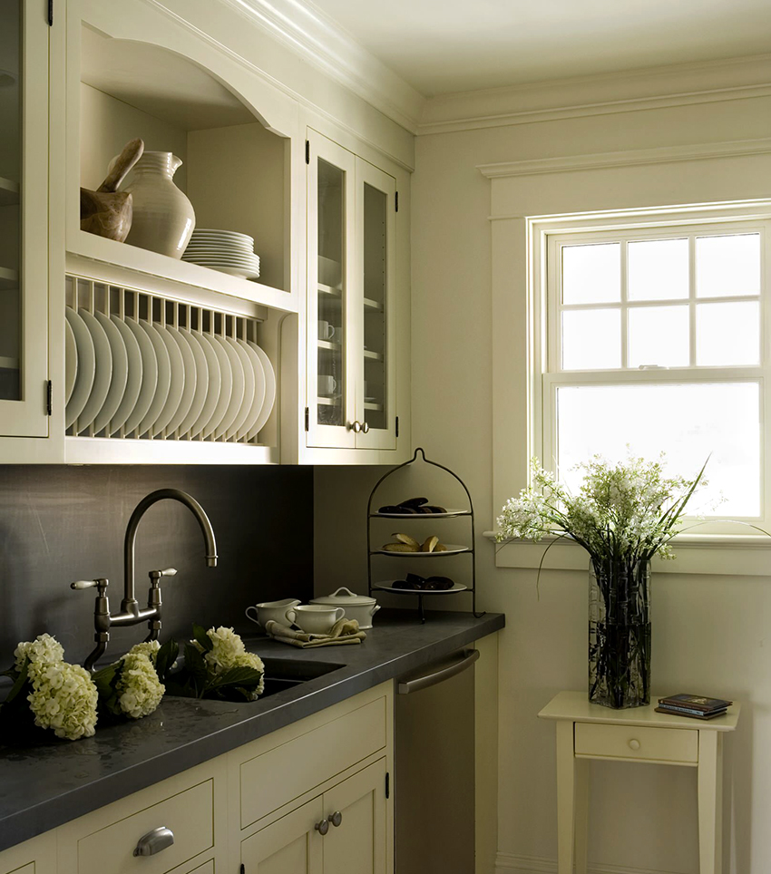 The design of integrated dryers can be simple or complex. In the first case, the product includes two tiers. The lower one is used for mugs, and the upper one is usually reserved for plates.More complex from a structural point of view, dryers may have additional compartments that are intended for glasses and other kitchen utensils.