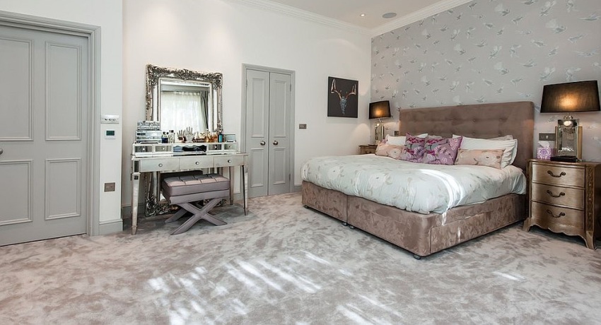 If the bedroom is made in a classic style, then the best addition would be a table decorated with exquisite wood carvings. The mirror itself in the bedroom interior in a classic style should have a round or oval shape, be framed with a luxurious chrome or silver frame.