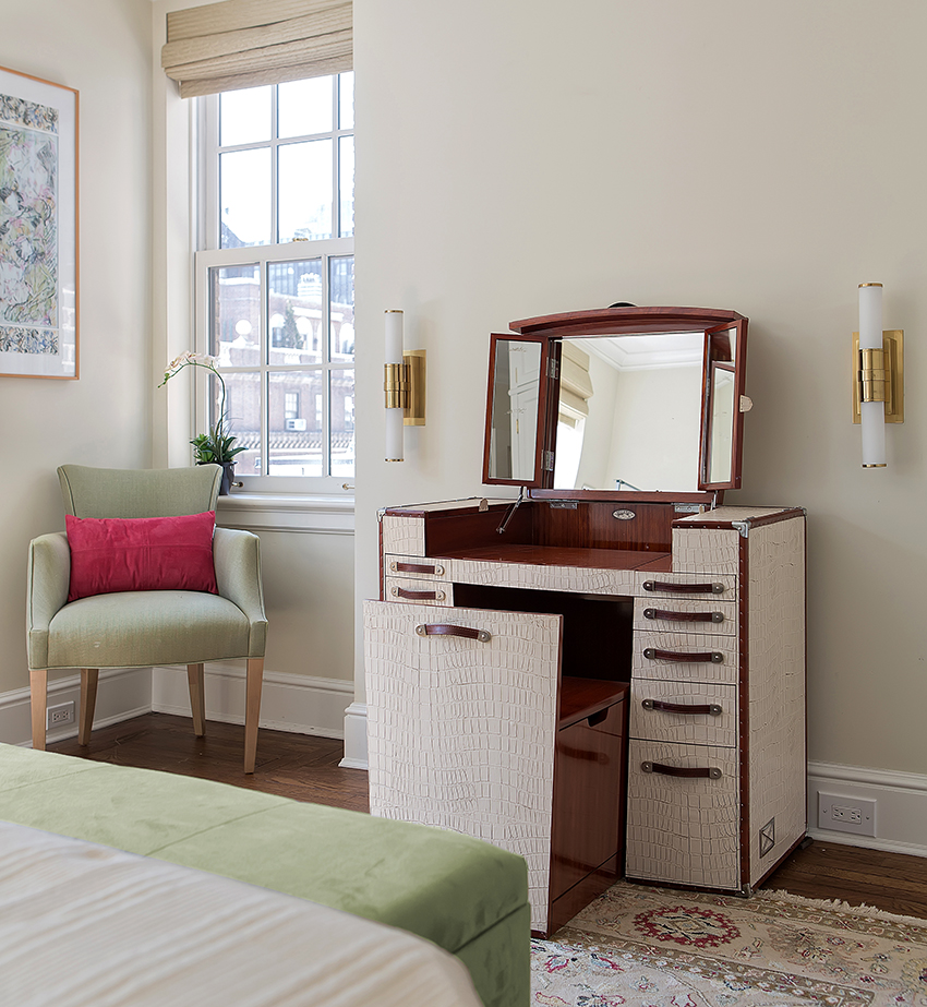Stylish design of makeup tables with a mirror in the interior of the bedroom