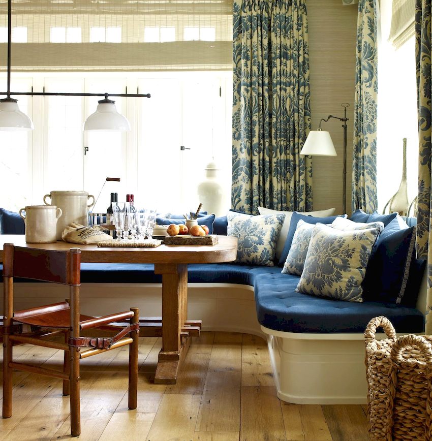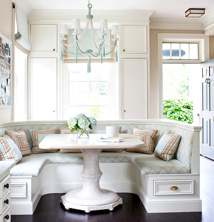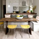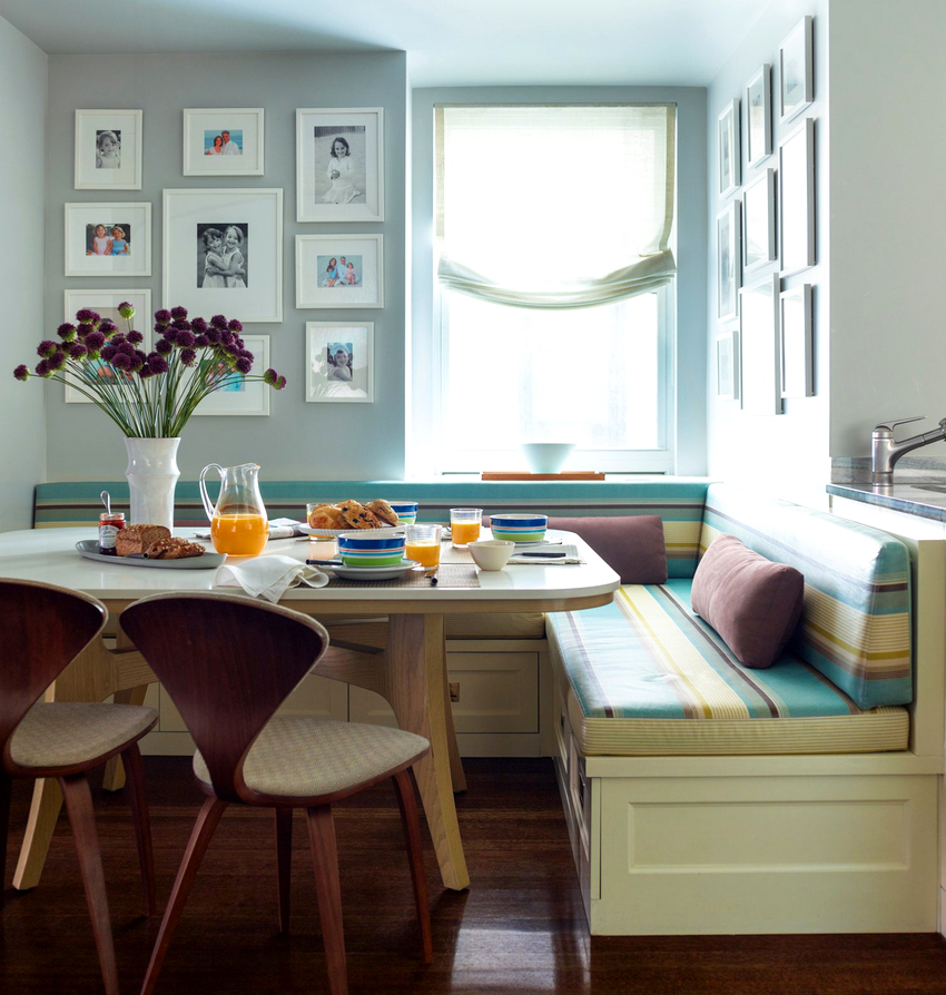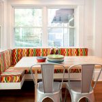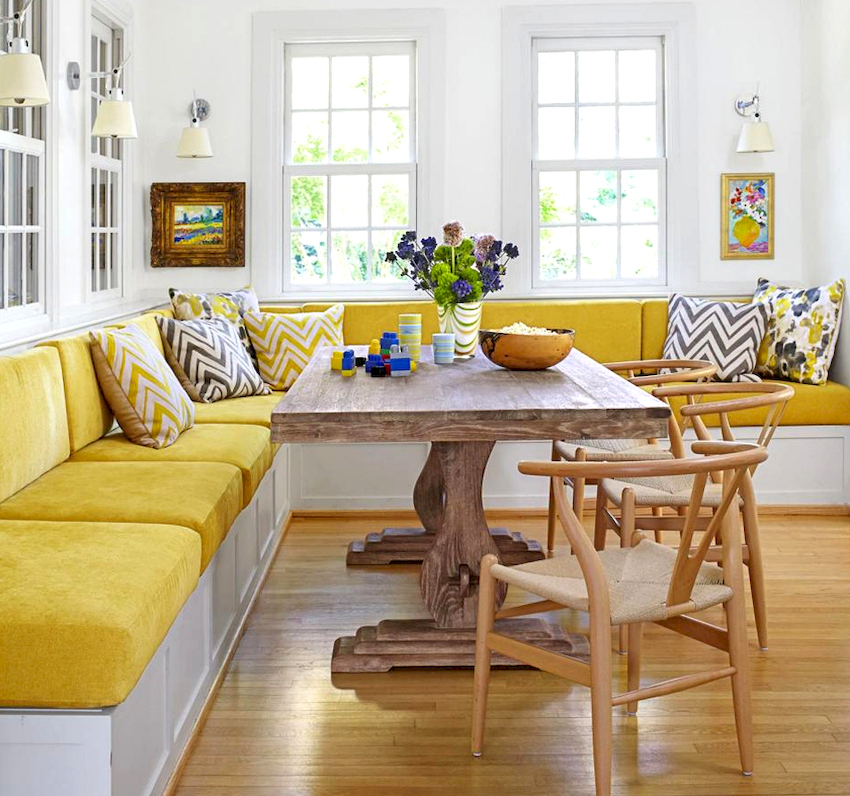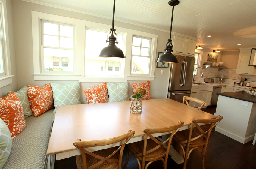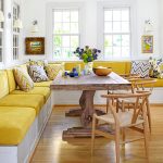If your kitchen has a bay window, you can't think of a better place for a corner sofa. This area is ideal for setting up a compact dining room.