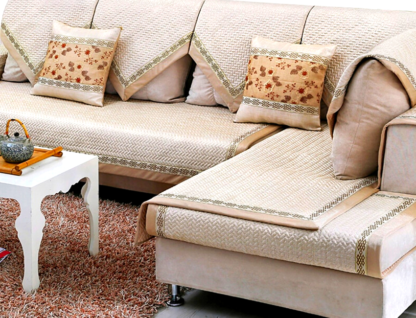 Tapestry is considered an excellent option.The density of its fibers is very high, making this material very difficult to cut or tear. Tapestry is not afraid of moisture, it lends itself well to cleaning. Fur cases and capes are used in cases where the design of the sofa has metal elements in contact with the human body while sitting. As a supplement to this cover, you can sew pillows.