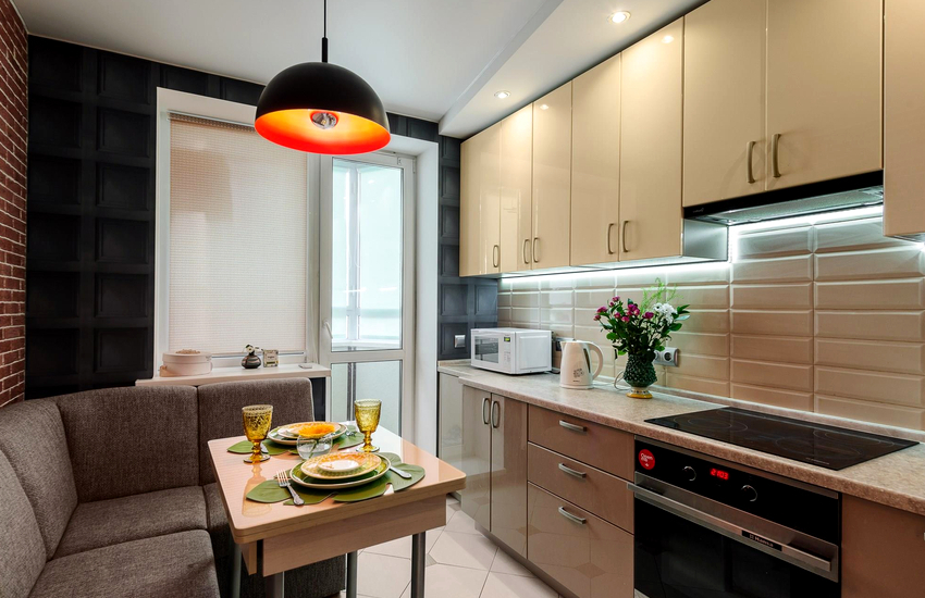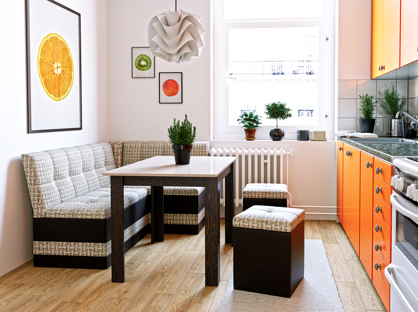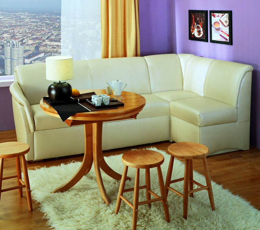 Owners of apartments with limited space should consider purchasing a small corner sofa for the kitchen.