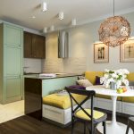 The advantage of the kitchen set, in which the sofa is part of the headset, is the rational use of free space.