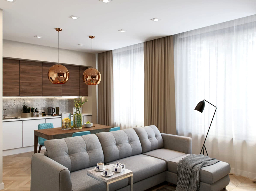 Furniture with standard dimensions is the easiest option to choose furnishings for the kitchen. However, a custom-sized sofa will fit the space best and match the room's configuration perfectly. Of course, the cost of this design will be much higher than the price of the standard model.