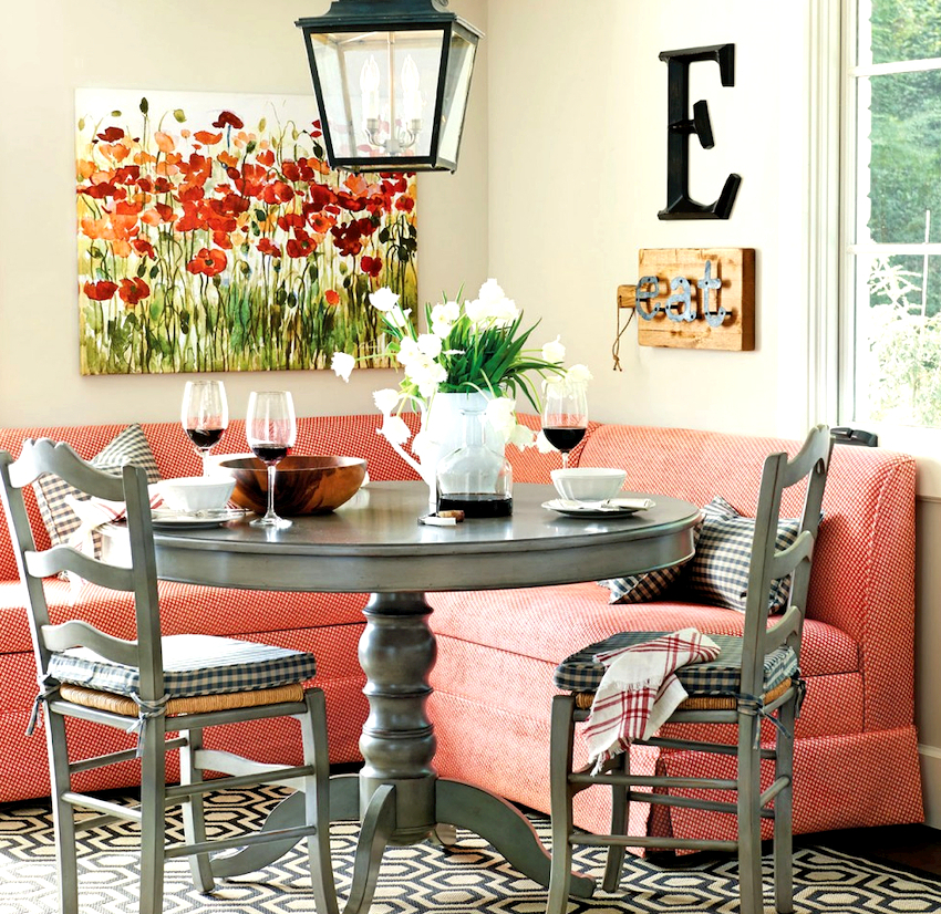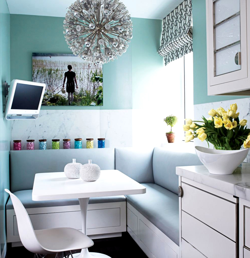 Having chosen a suitable model of a corner sofa for the kitchen and the optimal place for its placement, all that remains is to properly design this area. A bright wall makes a great backdrop. To draw attention to the sofa, you can use not only paint, but also wallpaper with a beautiful panorama, ornaments or realistic imitation of brickwork. Corner sofas contribute to creating a cozy and practical interior in the kitchen.