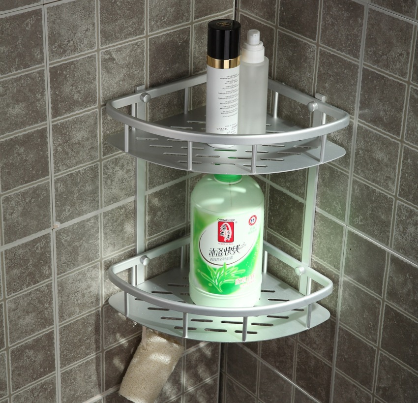 Corner structures that are used to store bathroom accessories are made mainly of polymer materials. Glass products can also be found on the modern market. Plastic shelves are sold complete with metal racks, which are made of stainless steel. Glass products are most often installed on a chrome base.