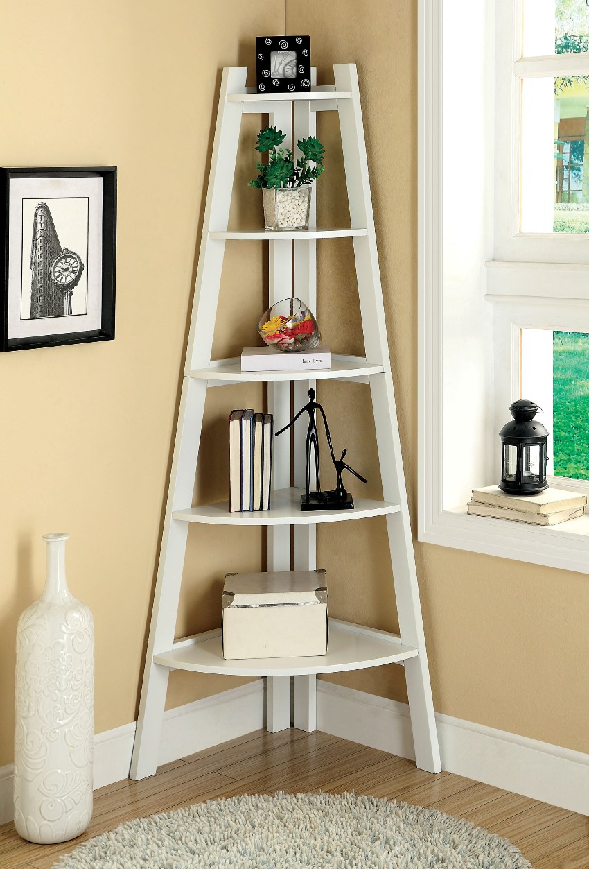 The best option in this case is to buy a corner shelving unit that has several levels.This design is suitable for rooms with limited free space. The cost of a corner shelf-rack depends on the following factors: