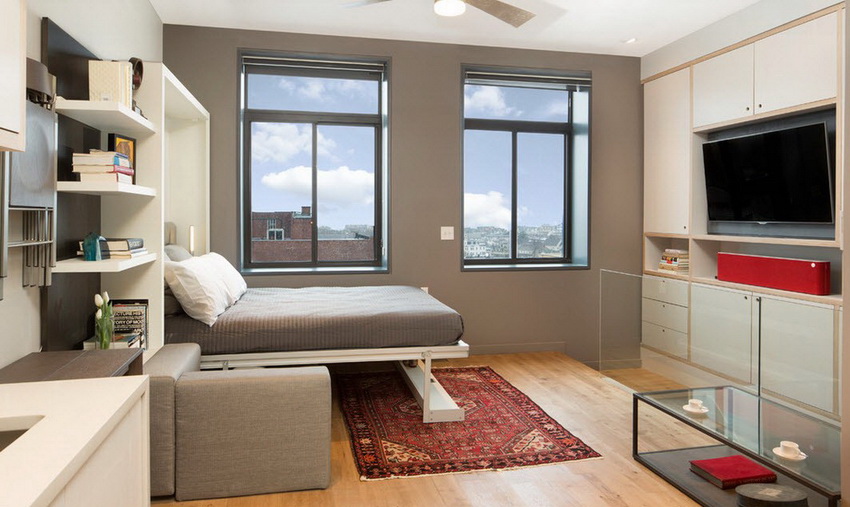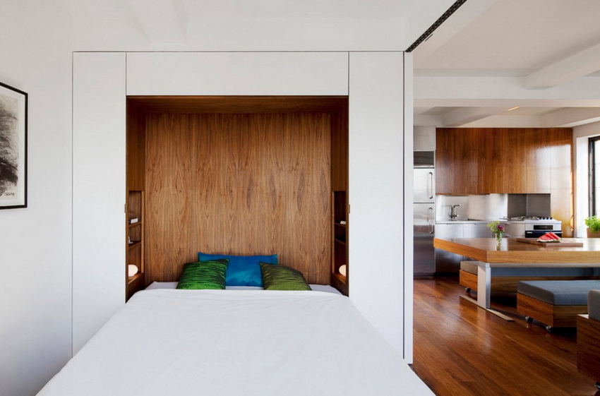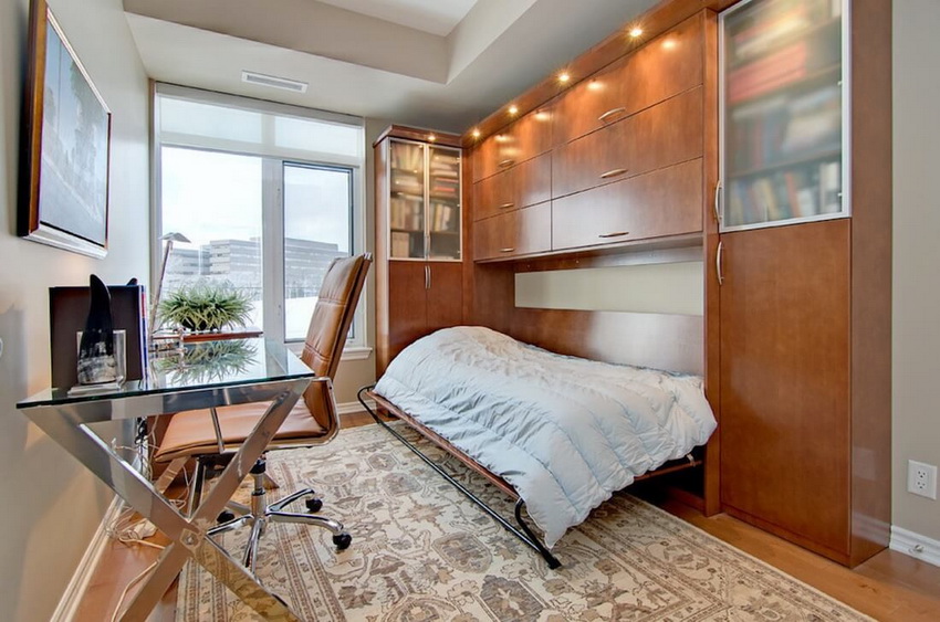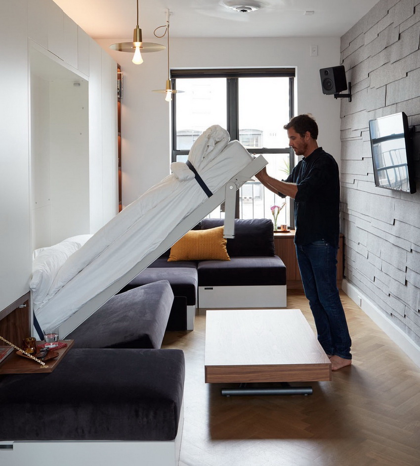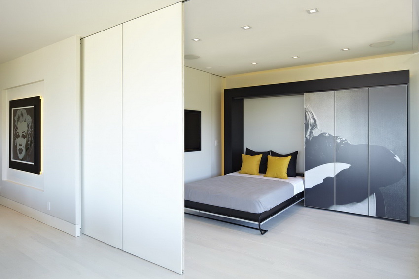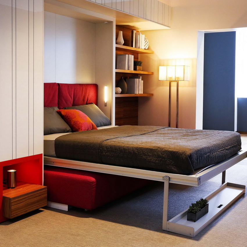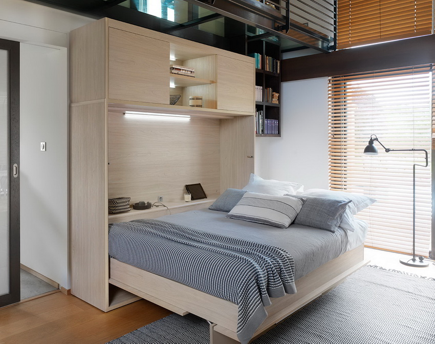 Beds that retract into a wall or closet are often found in photos of modern interiors. These designs are universal and multifunctional, therefore, designers and owners of compact city apartments skillfully use this furniture option to create comfort and coziness. And this is not surprising, because transforming beds allow you to achieve significant space savings and rational use of the freed up area.
