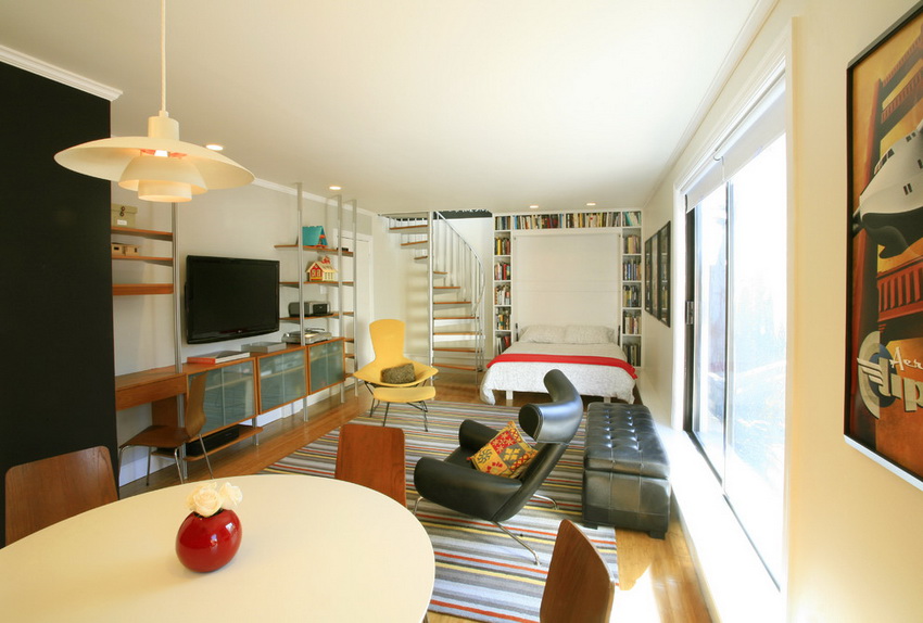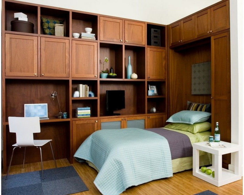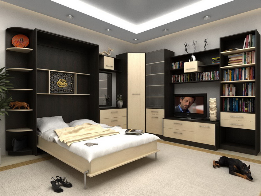 It is difficult to imagine a more suitable option for a room with a small area than a built-in bed with a wardrobe. Convertible pieces of furniture are not only convenient, but also practical and versatile. Such designs, regardless of whether they are made by hand or purchased in a store, help to correctly distribute and zone the space and give the interior a modern and stylish look.