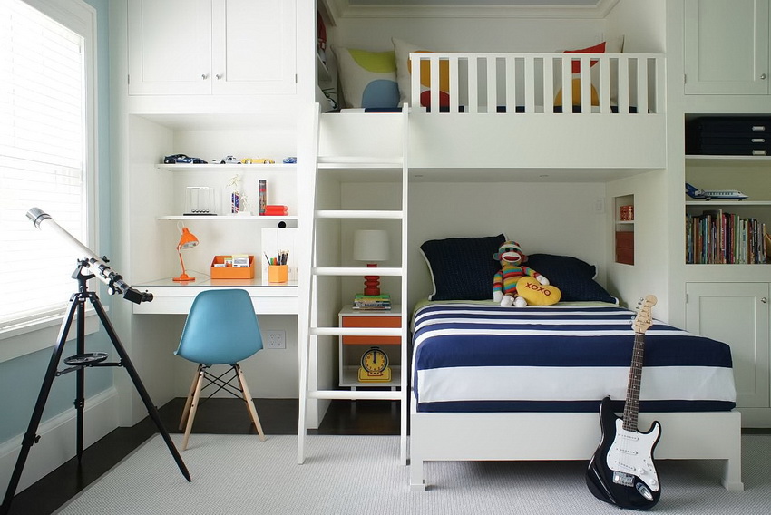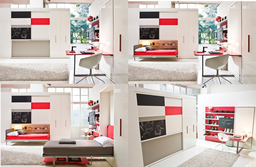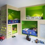There are also children's versions of products that have an appropriate design. The foldable design allows you to free up additional space in the bedroom for the play area. If several kids live in the room, the nursery will be a useful acquisition bunk bed with a wardrobe, allowing you to achieve double the space savings.