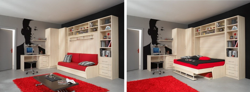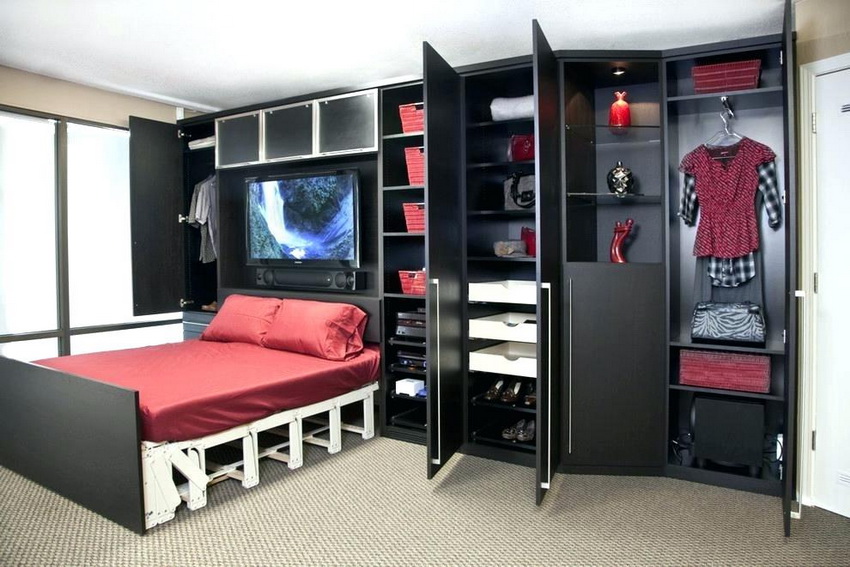 Combined pieces of furniture can simultaneously perform several functions. Consumers can buy a wardrobe, bed, sofa and storage box in one design. The main functions of a bed and a wardrobe are inherent in all products of this type.
