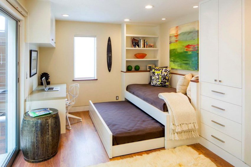 If the space in the children's room is very limited, in this case the design with two pull-out beds or a bunk modification would be the ideal solution.