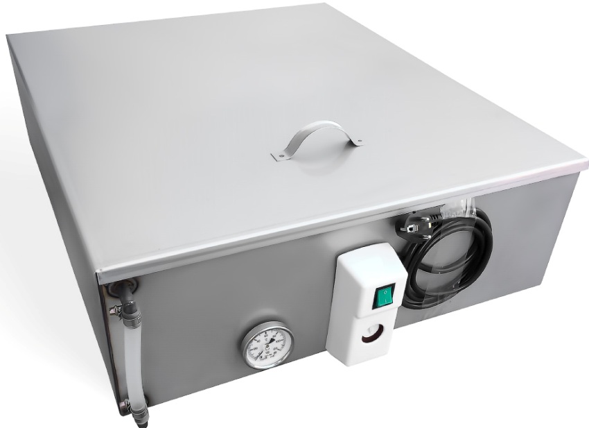 - a container with a heater and a storage-type system allows you to control the temperature and adjust parameters to a certain level;